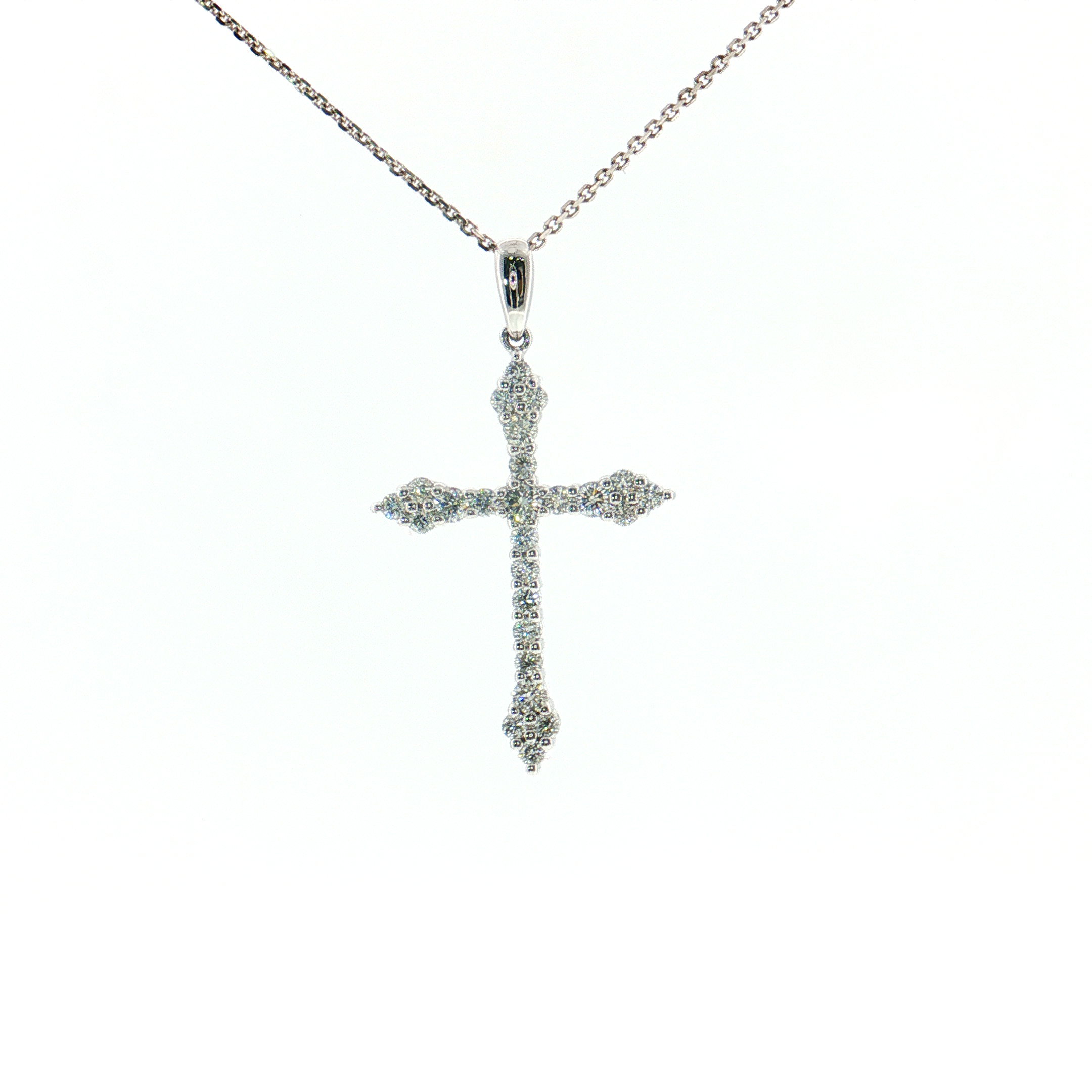 0.40ctw Diamond Cross Pendant 14K White Gold | 18" Necklace