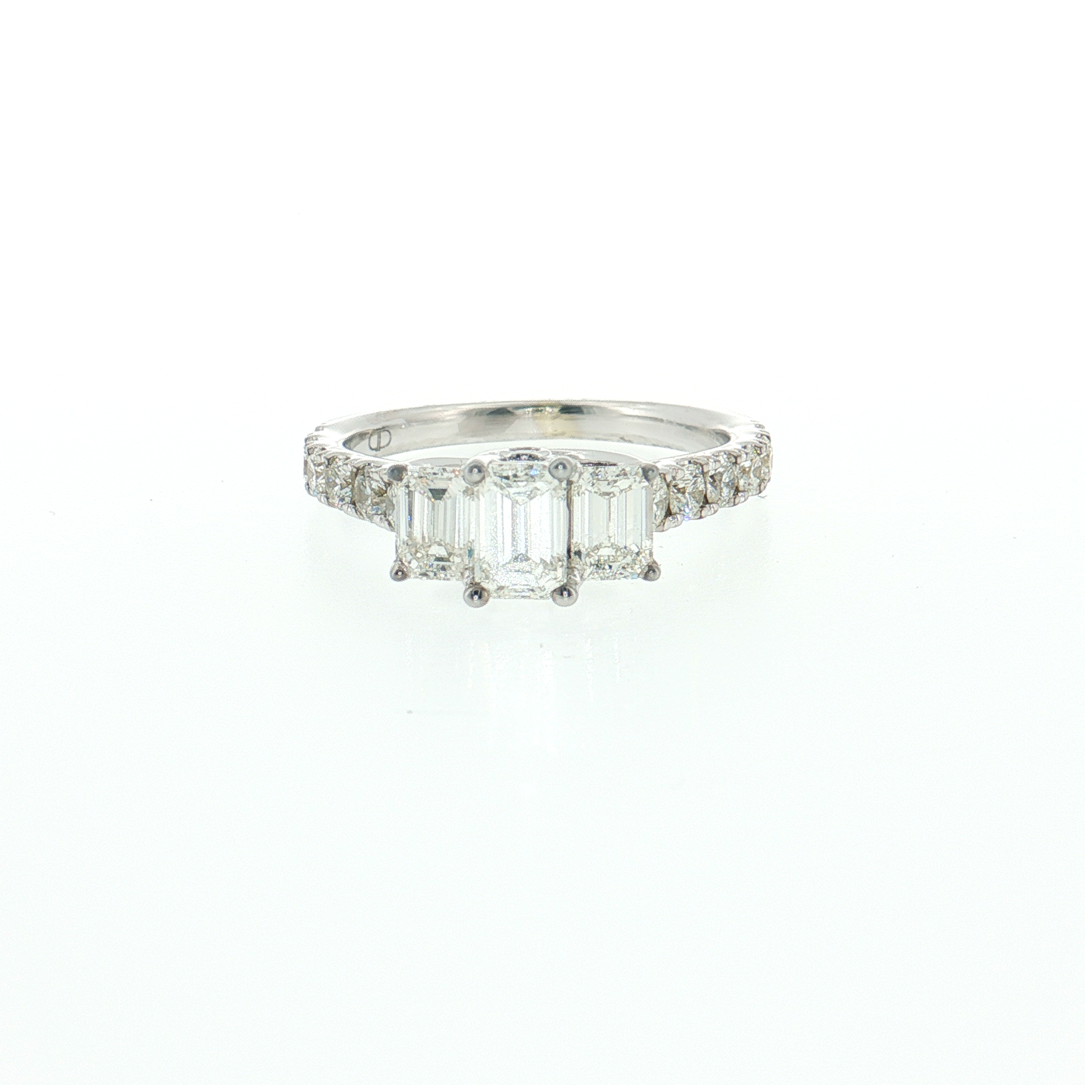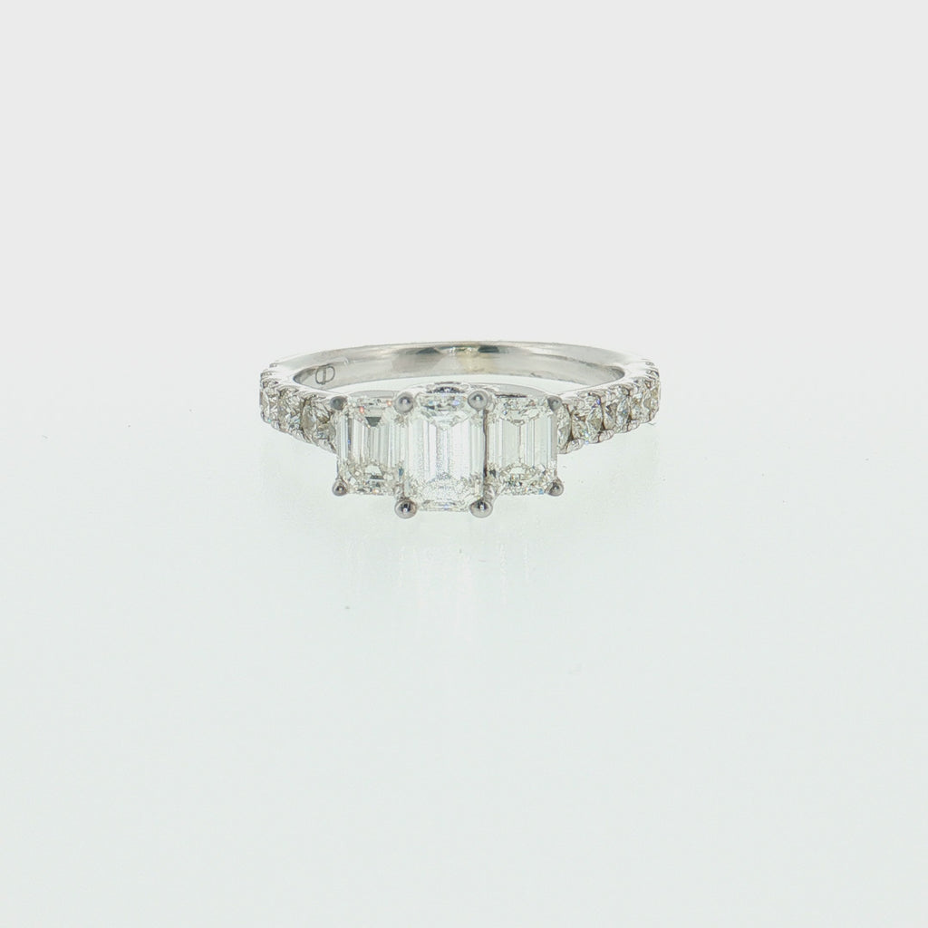 1.50ct Emerald & Diamond Three Stone Engagement Ring | 14k White Gold