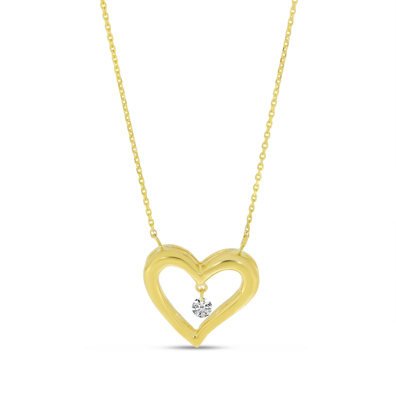 14K Yellow Gold Dancing Diamond Heart Pendant