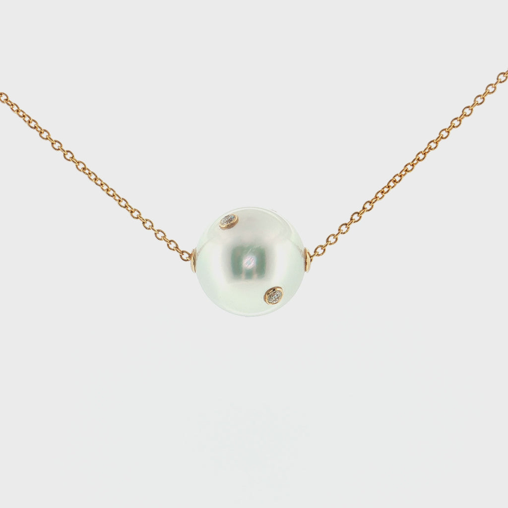 Lady's 14k Yellow Gold Floating Akoya Pearl & Diamond Pendant | 16"