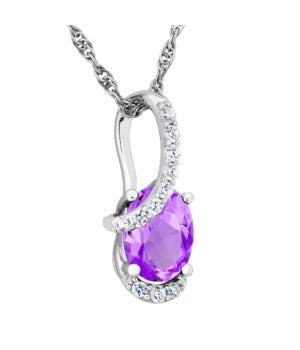 Lady's Sterling Silver Pendant With 8.00-6.00Mm Oval Amethysts And Round White Topazs