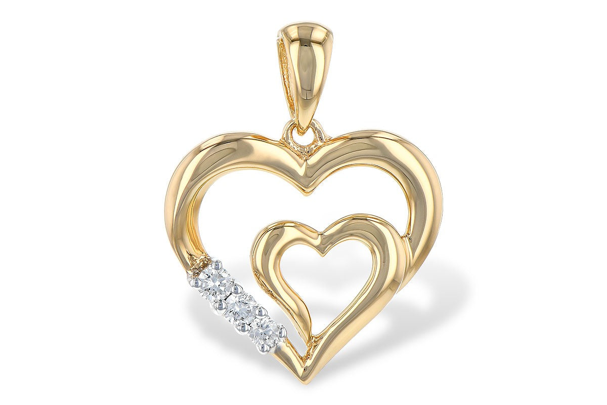Yellow 14 Karat Double Heart Pendant Length 18 With 3=0.06Tw Round G/H Si1-Si2 Diamonds Style: Cable Link