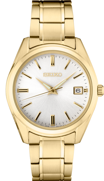 Discover the Gents Essentials 40mm men's watch. This classic timepiece includes sapphire glass, reliable quartz movement, and a durable stainless steel gold plated bracelet band.