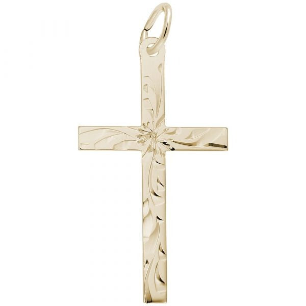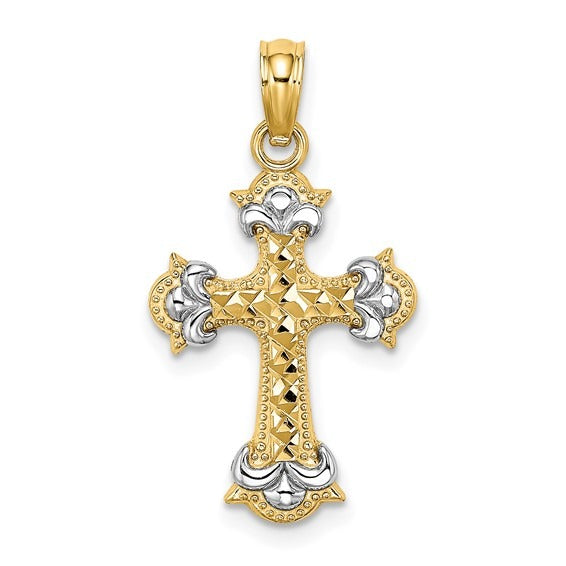 10K Yellow Gold CZ Passion Cross Charm | Religious Pendant