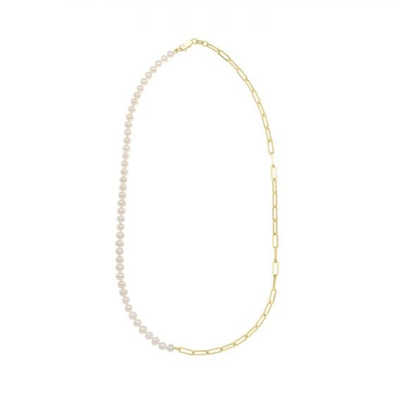 Hollow Paperclip 5Mm Pearl 14K Yellow Chain Length 18