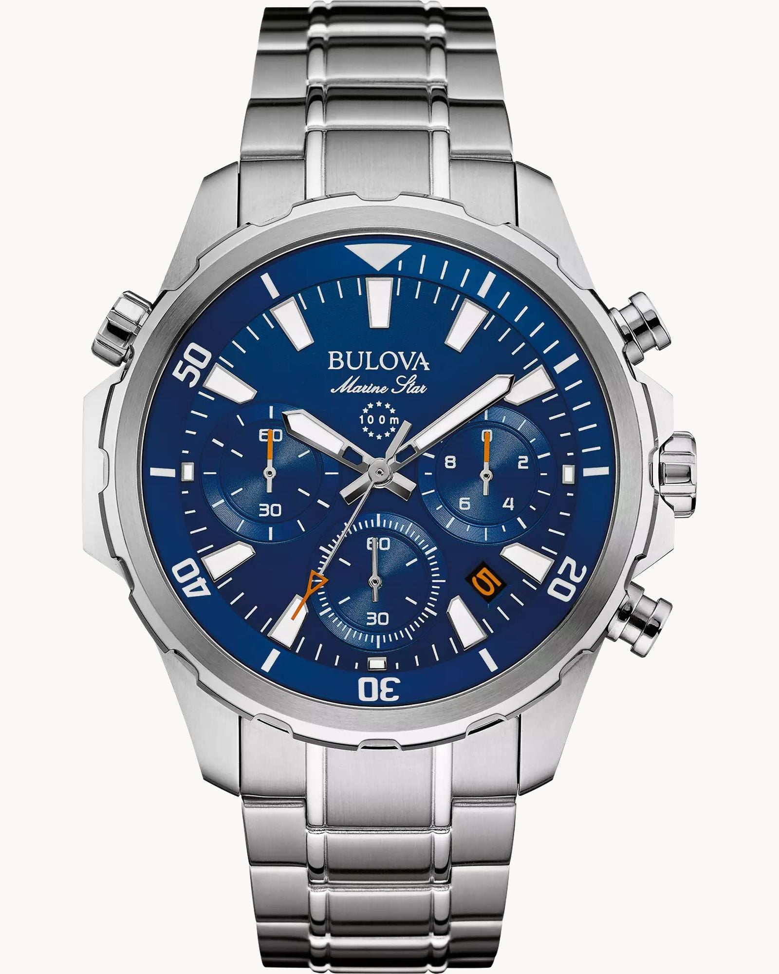 Stainless Steel Blue Dial Chronograph Bulova Marine Star 96B256