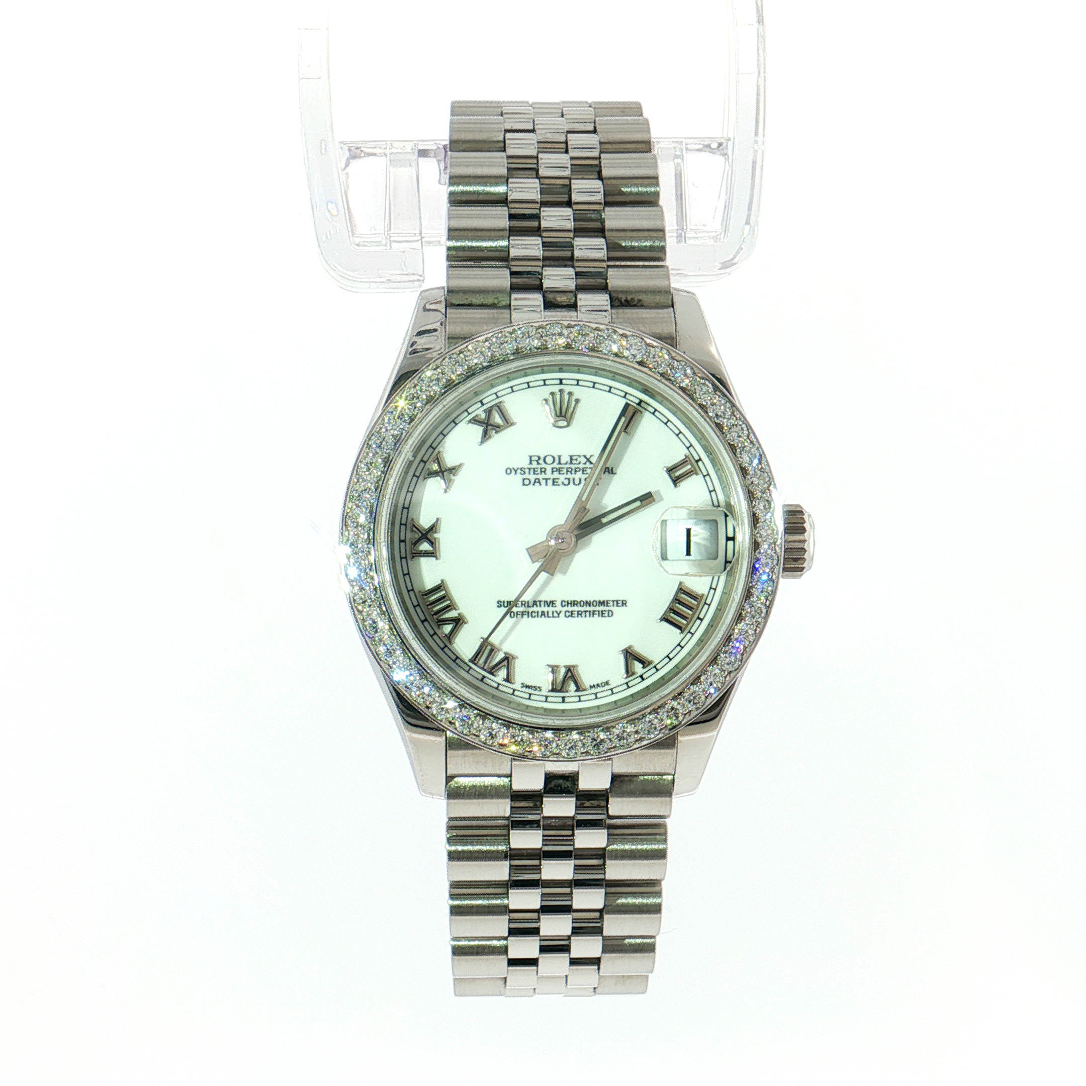 Rolex Datejust 31mm 278240 White Roman Dial Diamond Bezel (2021)