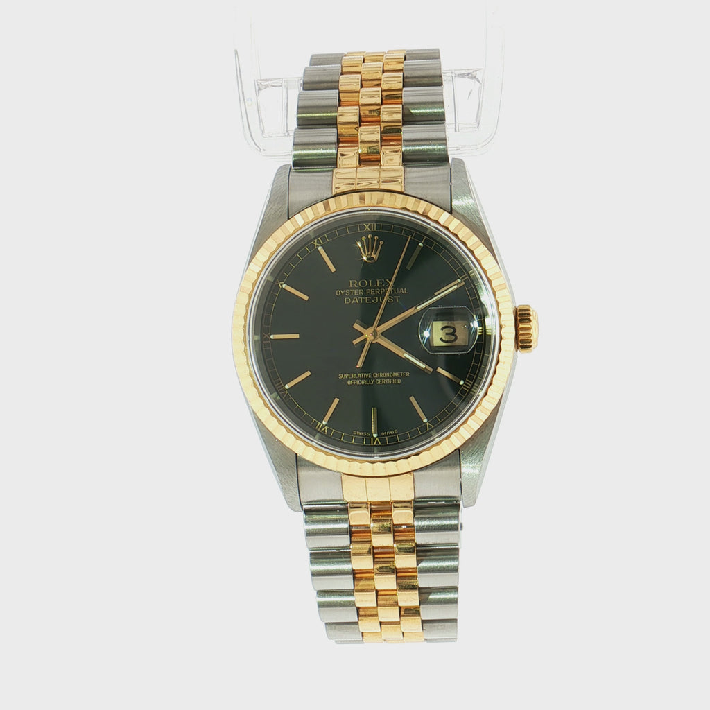 Rolex Datejust 36 16233 Black Stick Dial | 18k Yellow Gold & Steel
