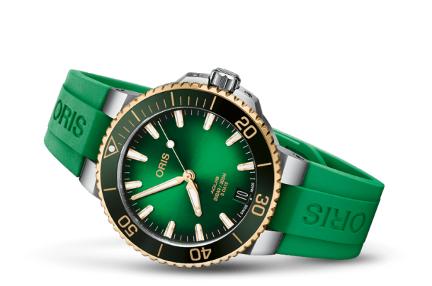 Gent's Aquis Date Green Dial Watch 18K Gold Bezel