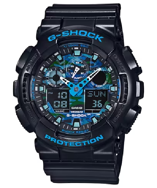 Gent's Blue Camo Dial Black Band Analog/Digital Watch By G-Shock