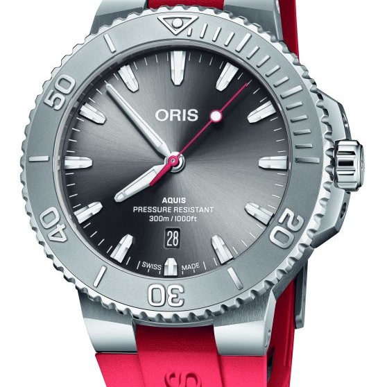 Gent's Red Caoutchouc Aquis Date Relief Automatic Watch