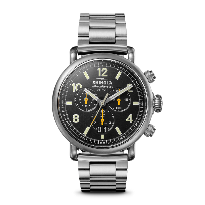 Gent's 47MM Silver Dial Runwell Chrono Watch | Shinola | Gent's Cattail Brown Strap