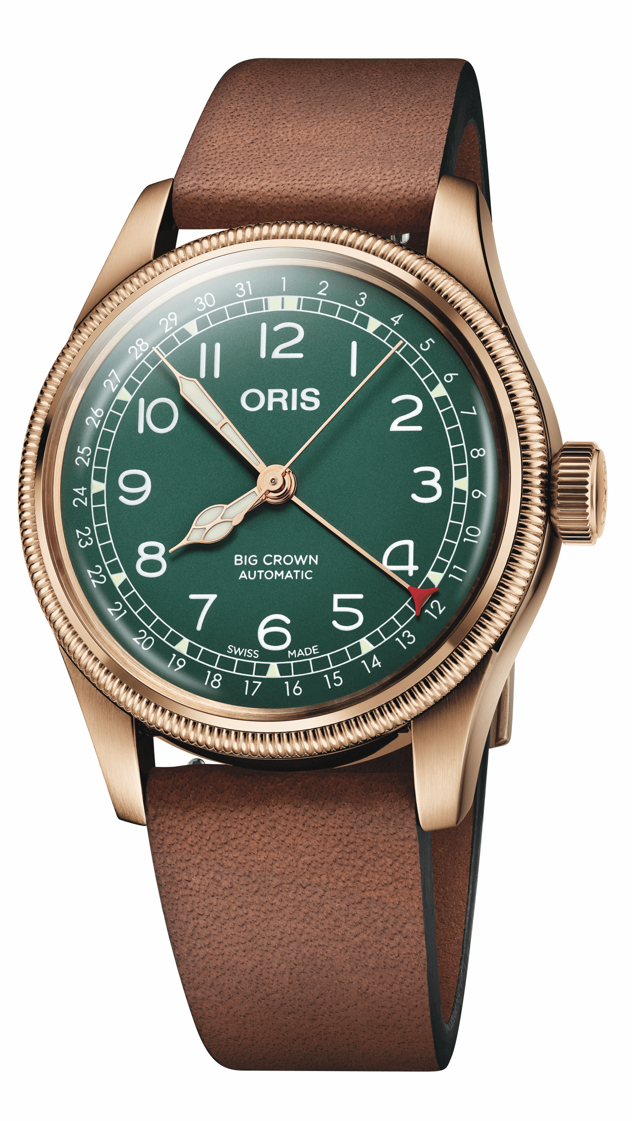 Celebrate with the special edition 80th Anniversary Oris BC Pointer Date watch. Features a classic 40mm bronze case, striking green dial, automatic movement, and comfortable strap. A timeless tribute timepiece for gents.