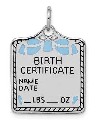 Lady's Engravable Sterling Silver Birth Certificate Charm