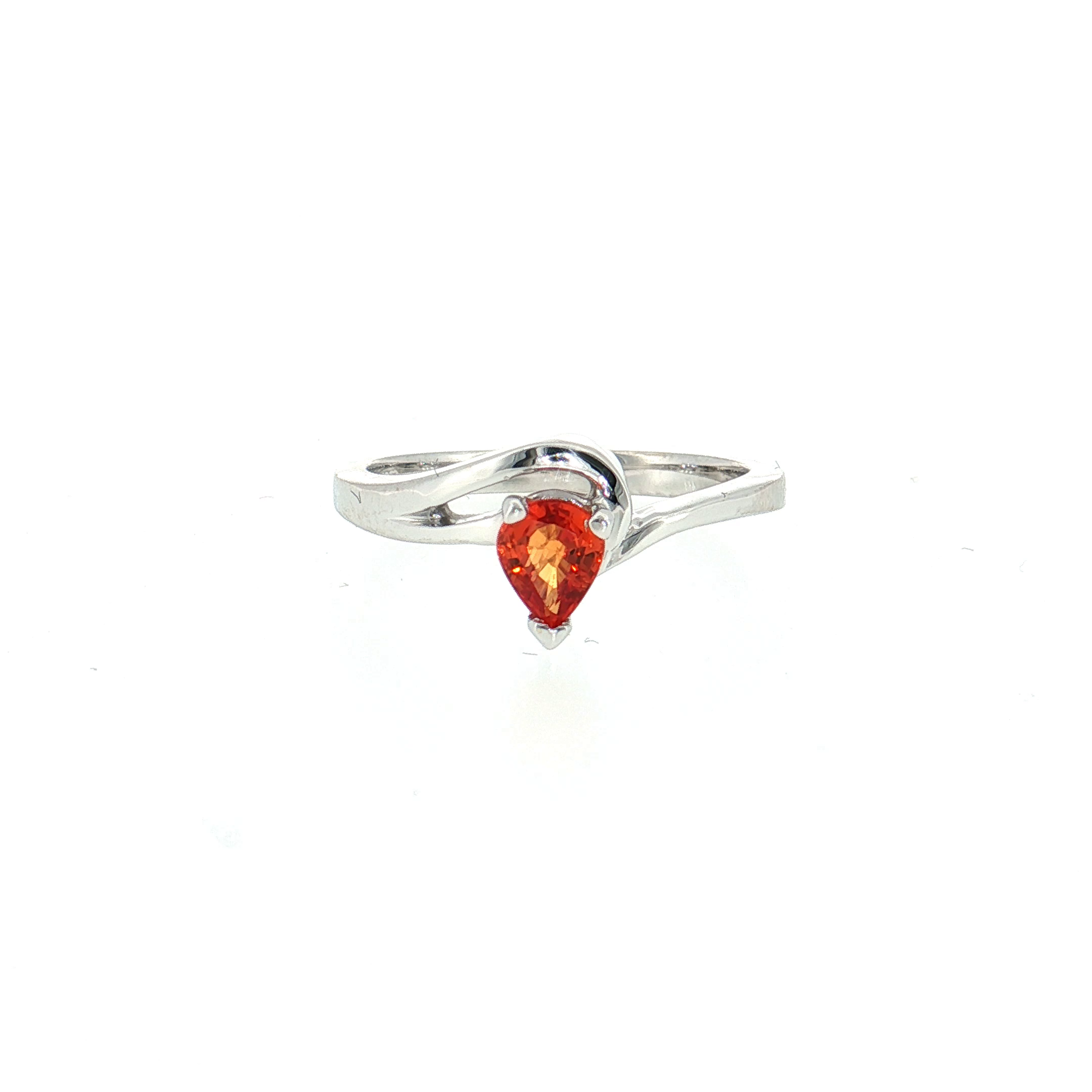 14K White Gold 0.50ct Pear Orange Sapphire Solitaire Ring