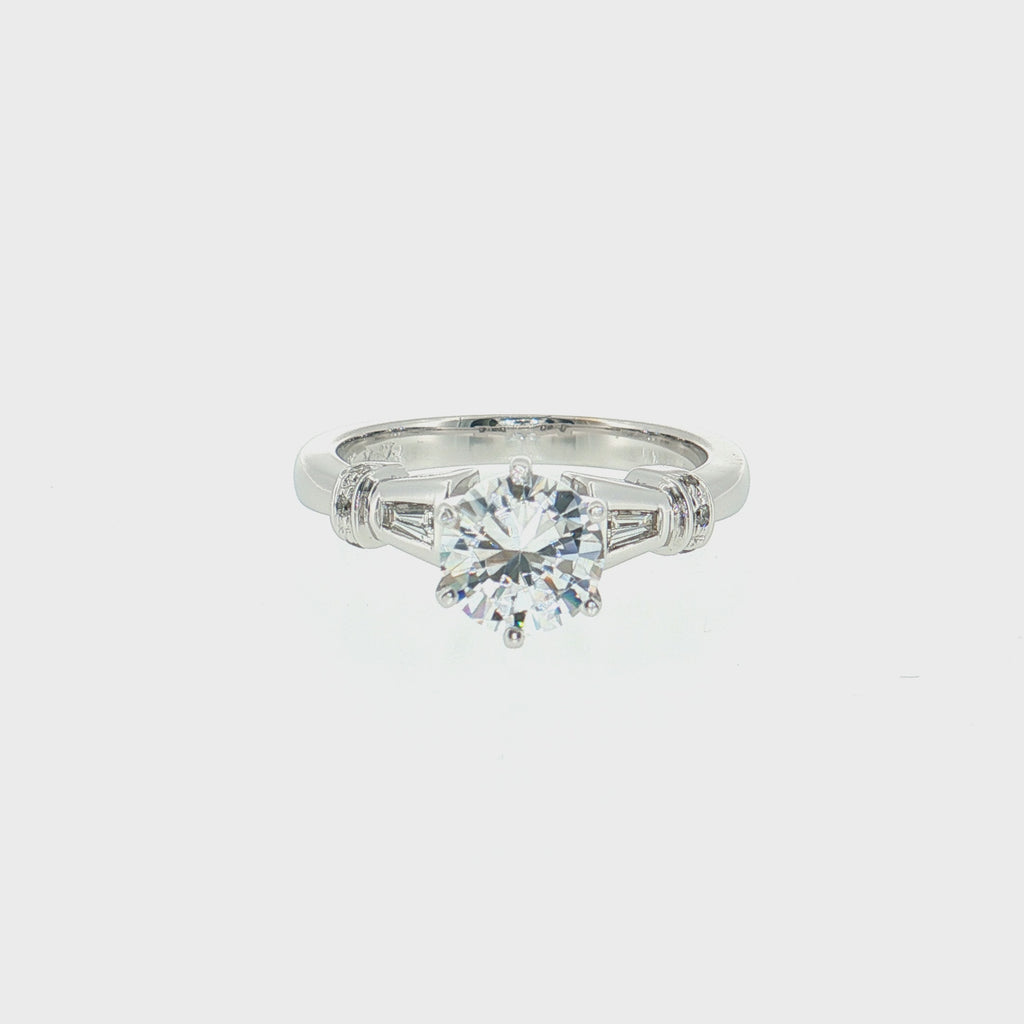 14K White Gold Three-Stone Semi-Mount Diamond Ring | 1ct Round CZ