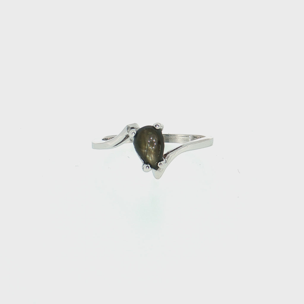 14K White Gold Pear Black Star Sapphire Solitaire Ring | 0.55ct