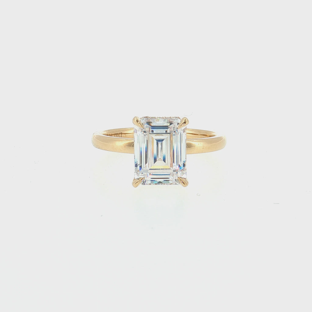 14K Yellow Gold Hidden Halo Emerald Cut Semi-Mount Ring | Size 6.5