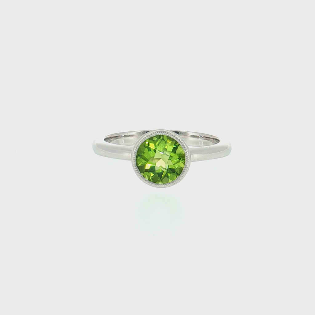 14K White Gold Round Peridot Solitaire Ring | Natural Gemstone