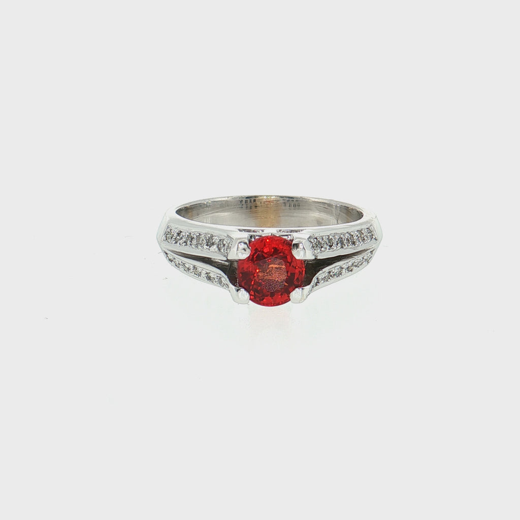 14K White Gold Red Sapphire & 0.20TWT Diamond Ring