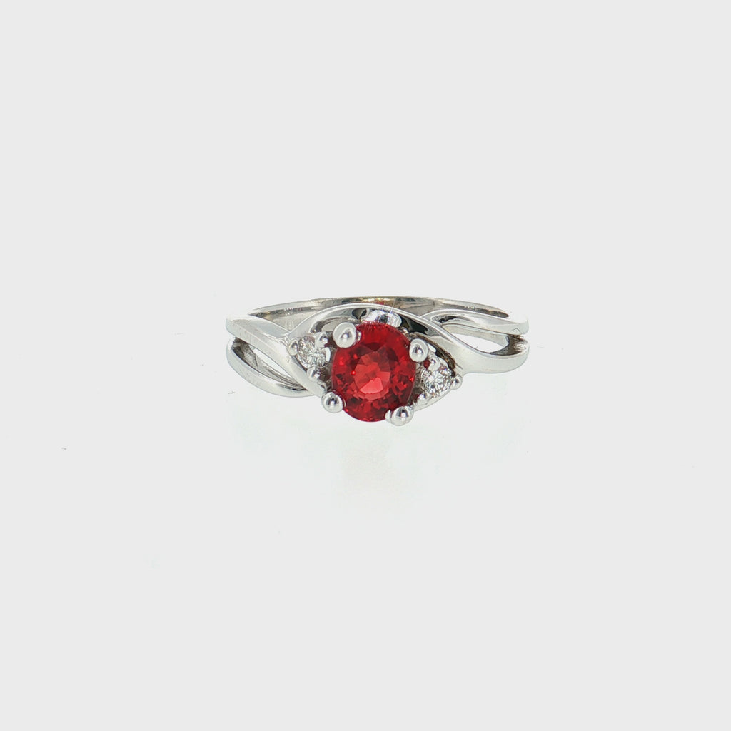 14K White Gold AA Red Sapphire & Diamond Three Stone Ring