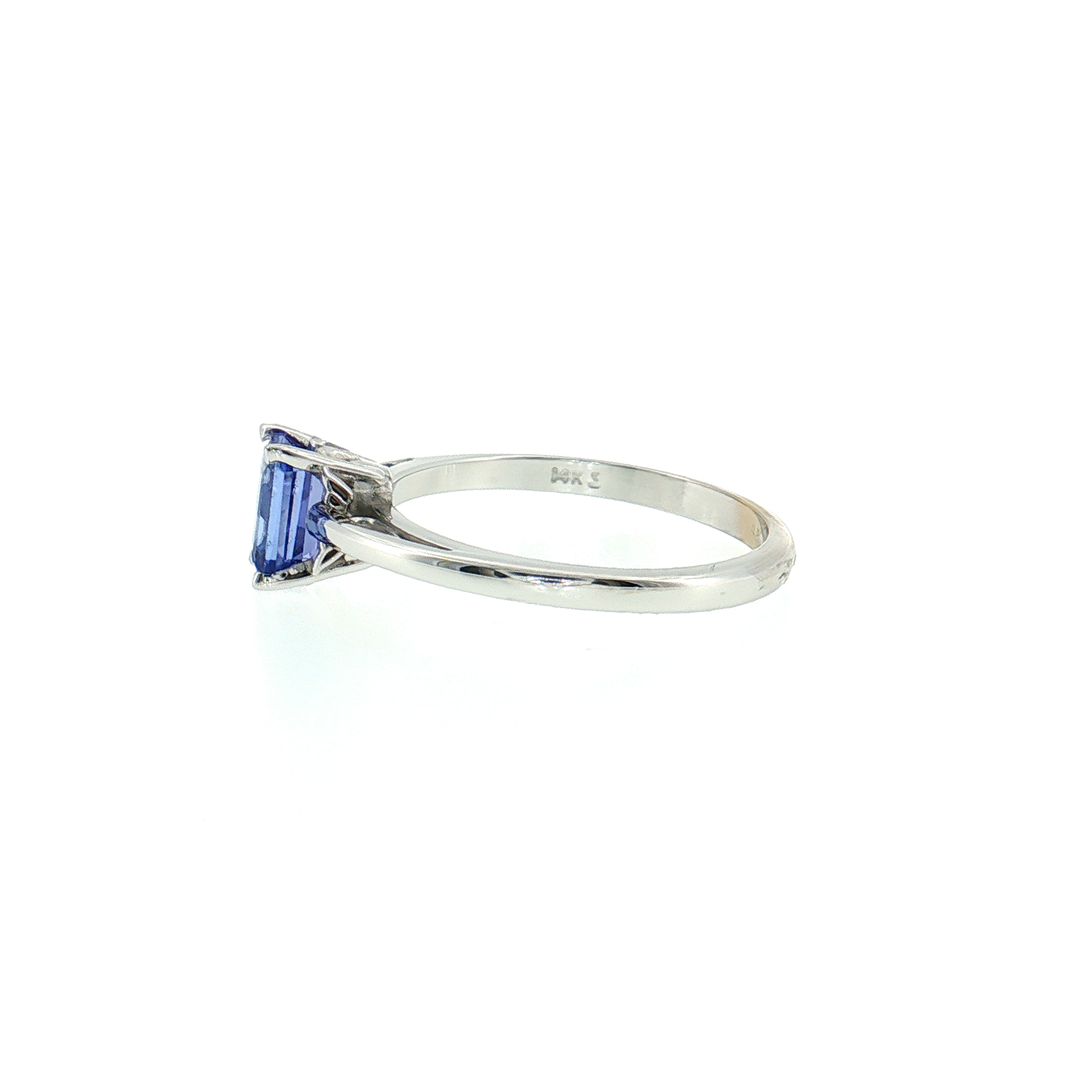 14K White Gold Emerald Cut Tanzanite Solitaire Ring | AA Grade