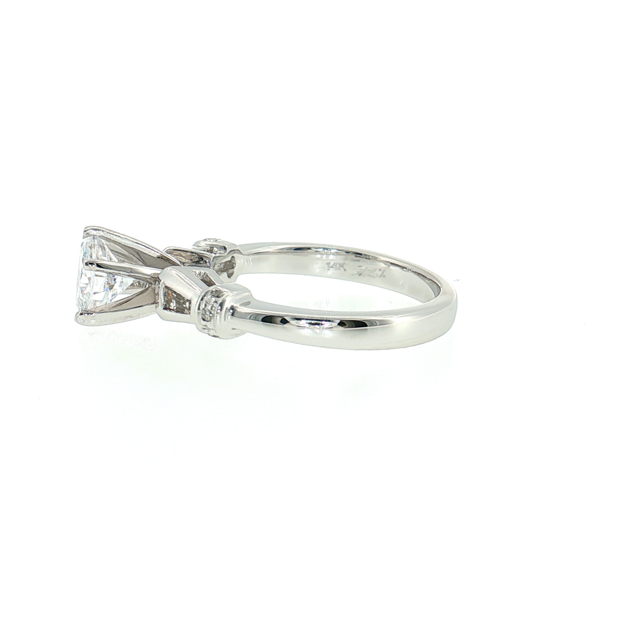 14K White Gold Three-Stone Semi-Mount Diamond Ring | 1ct Round CZ