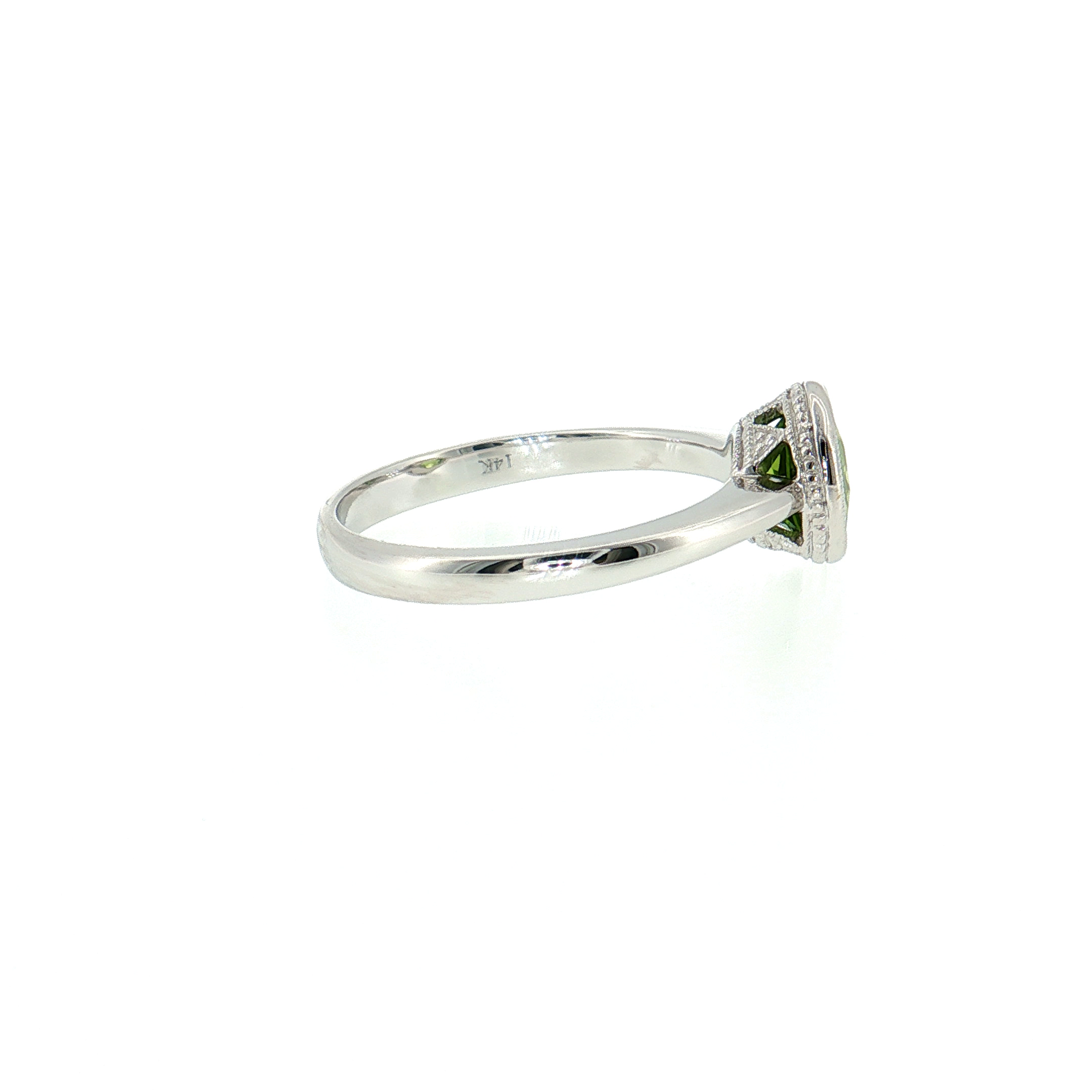 14K White Gold Round Peridot Solitaire Ring | Natural Gemstone