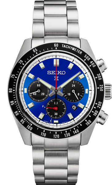 Shop the Gents Seiko Prospex Speedtimer, a high-performance solar quartz chronograph watch. Features include a durable stainless steel case and bracelet, scratch-resistant sapphire crystal, and 41mm case size. Modern and reliable.