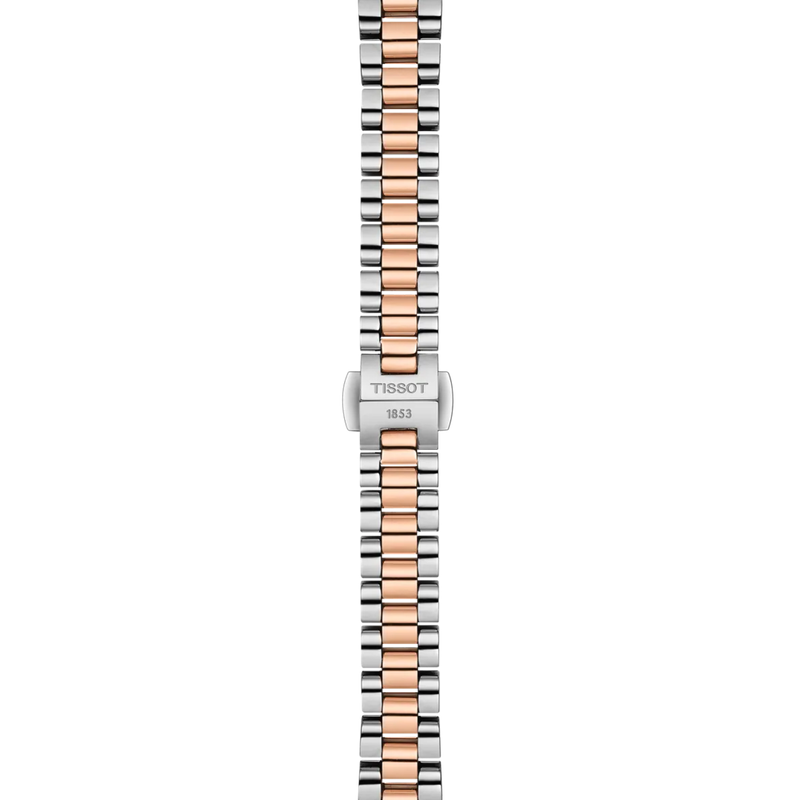 Elegant Tissot Desir 28mm watch in stainless steel with a rose gold PVD coating. Features a precise Swiss quartz movement and classic two-tone bracelet.