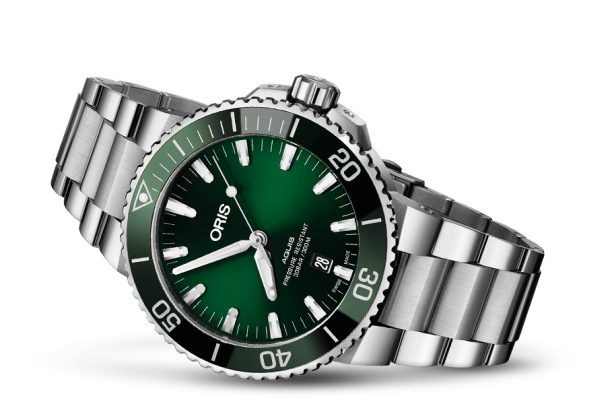 Gent's Aquis Date Green Dial Watch 18K Gold Bezel