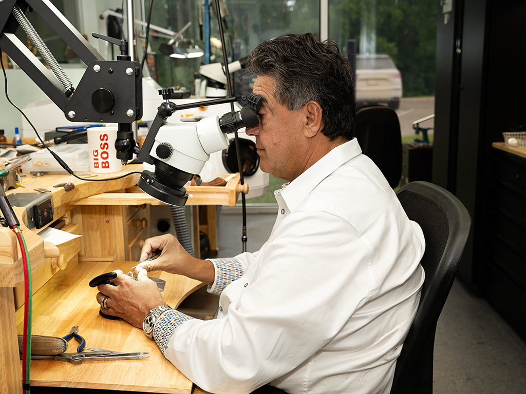 Our Repairs, Engraving, and Jewelry Cleaning services keep your treasured pieces in excellent condition. From ring resizing to laser engraving and ultrasonic cleaning, our skilled in-house team ensures your jewelry is carefully inspected, maintained, and personalized. Enjoy complimentary cleanings and expert guidance for all repair and customization needs.