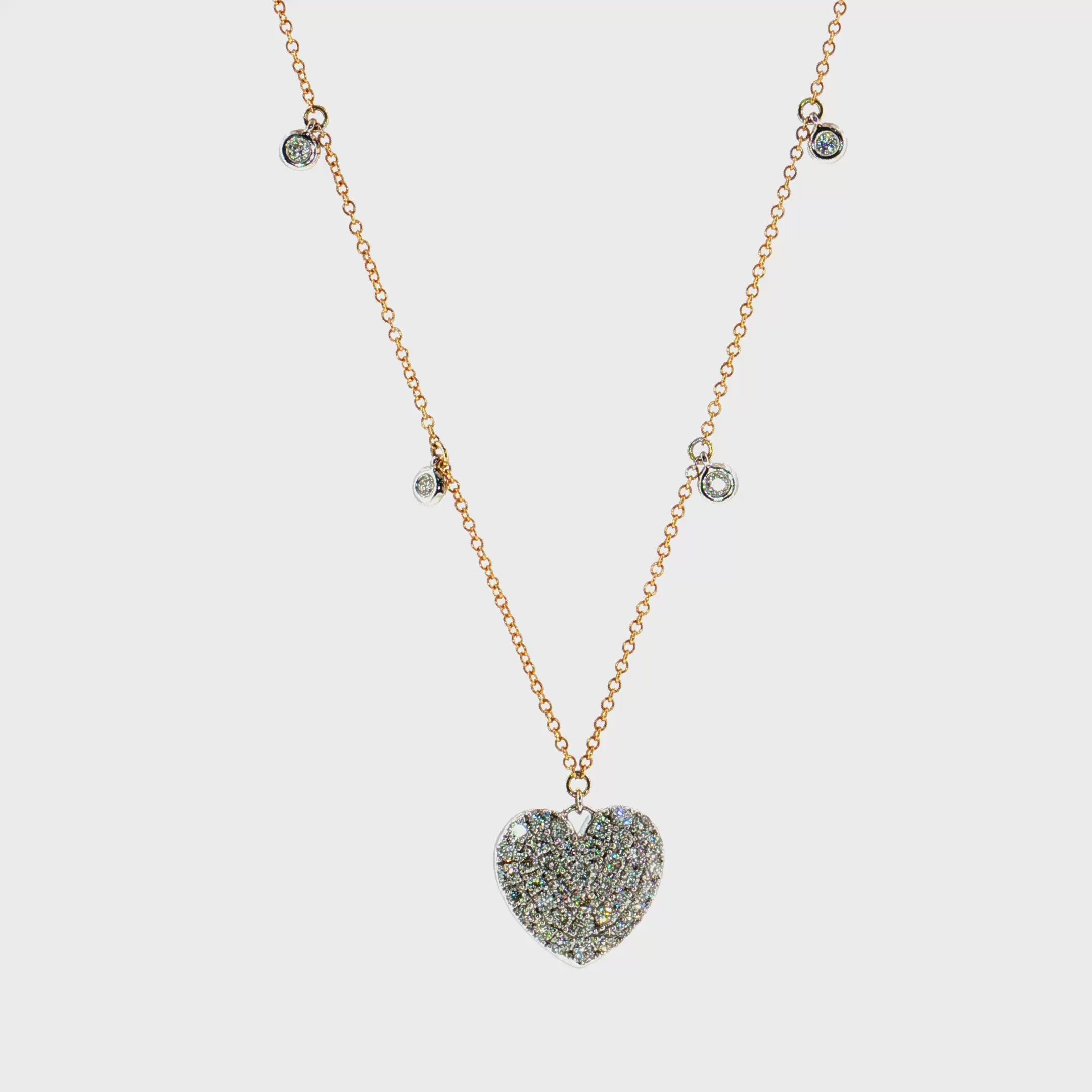 14K Two-Tone Gold Open Link Heart Diamond Pendant