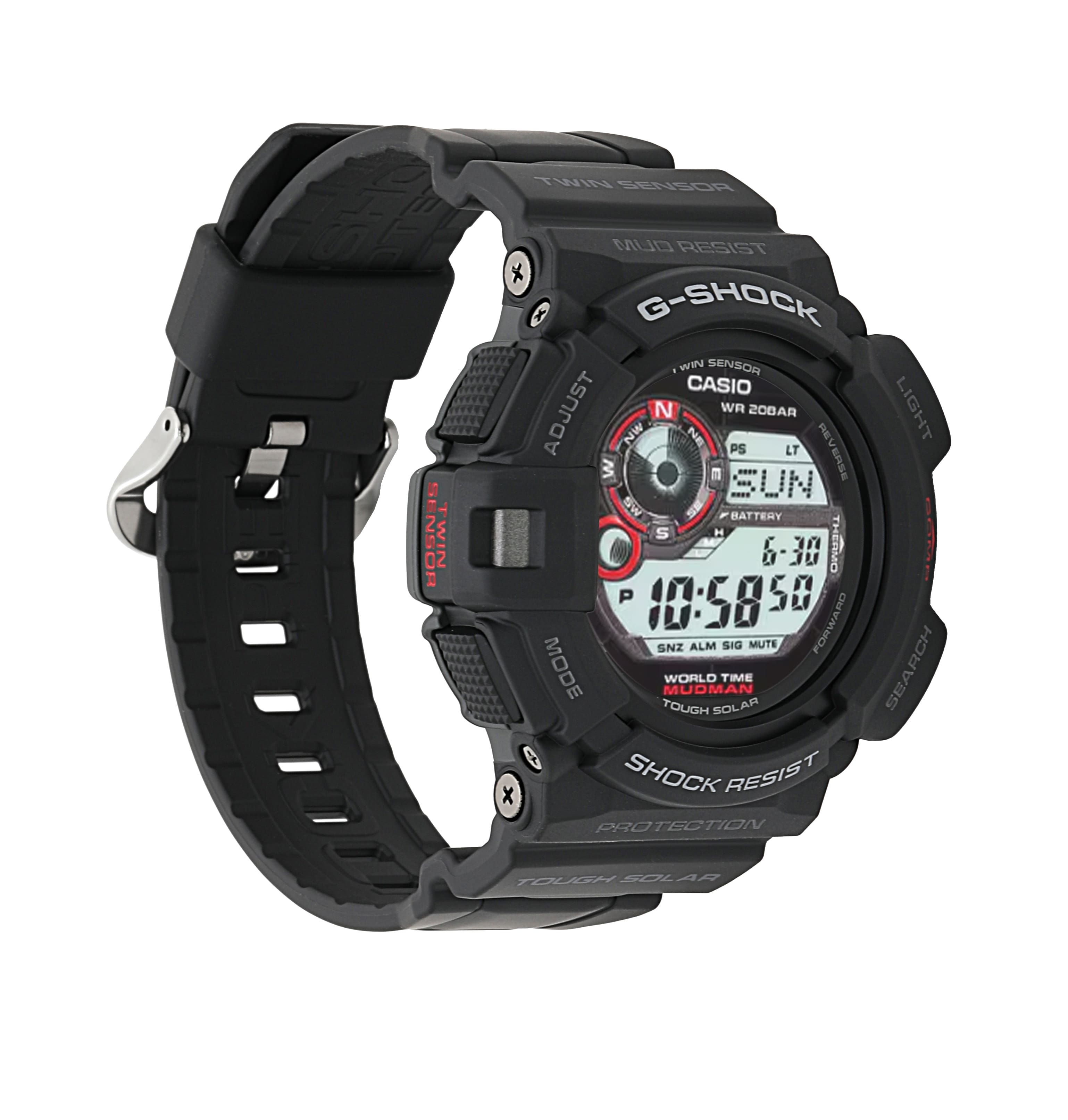 Gent's Tough Solar Black/Red Mudman Watch Strap/Brac.: World Time