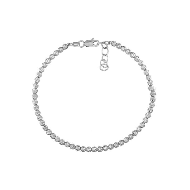 Rhodium Plated Dia. Cut Sterling Silver D/C Bead Bracelet