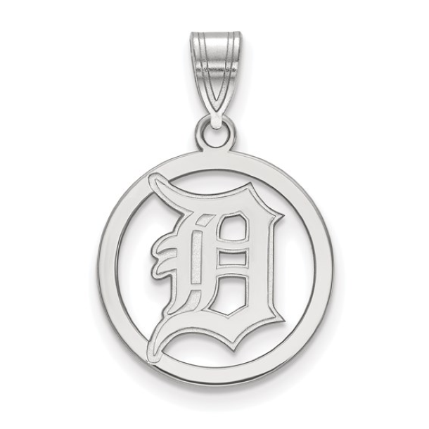 Sterling Silver Rhodium-plated MLB LogoArt Detroit Tigers Letter D in Circle Small Pendant