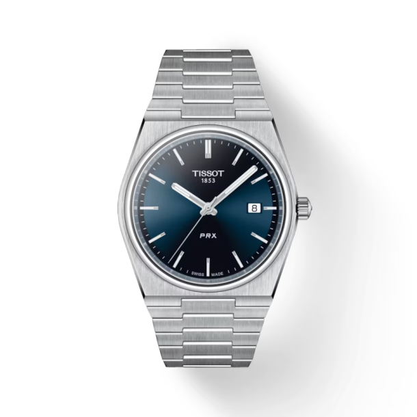 Shop the iconic Tissot PRX 40mm featuring a stunning blue sunray dial, integrated stainless steel bracelet, and scratch-resistant sapphire crystal. Swiss-made precision.