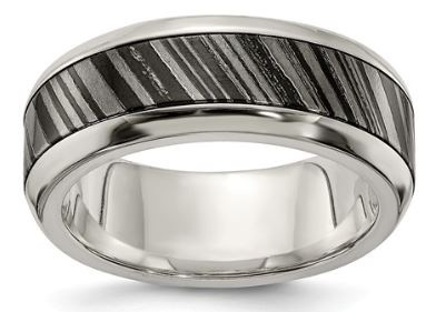 Titanium And Silver Timoku 8Mm Band With Beveled Edges
