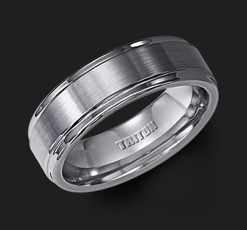 7Mm Tungsten Carbide Ring - Brushed Finish And Step Edge By Triton