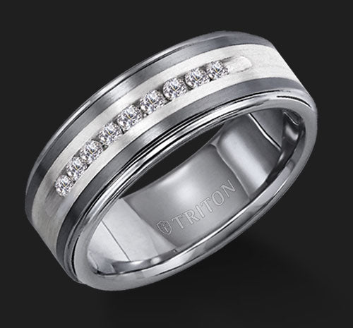 Gray Tungsten 0.25Ctw Silver Inlay Tungsten by Triton