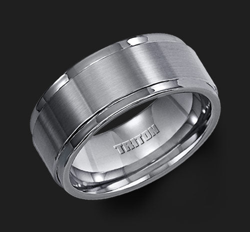 9Mm Tungsten Carbide Ring - Brushed Finish And Step Edge